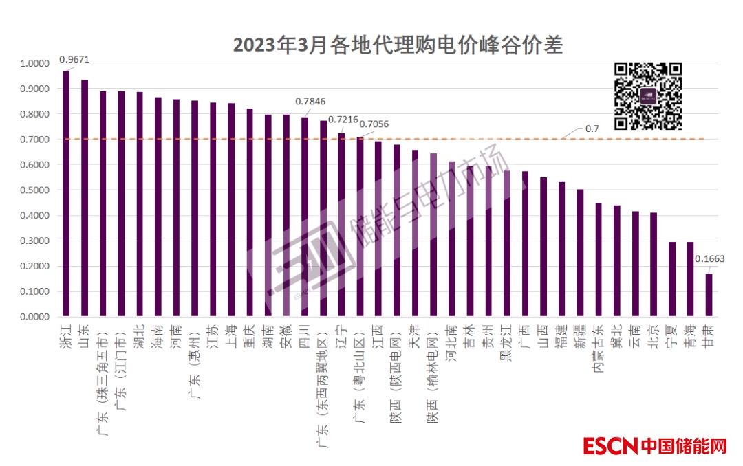 超過七成的地區(qū),3月峰谷價差同比增長。