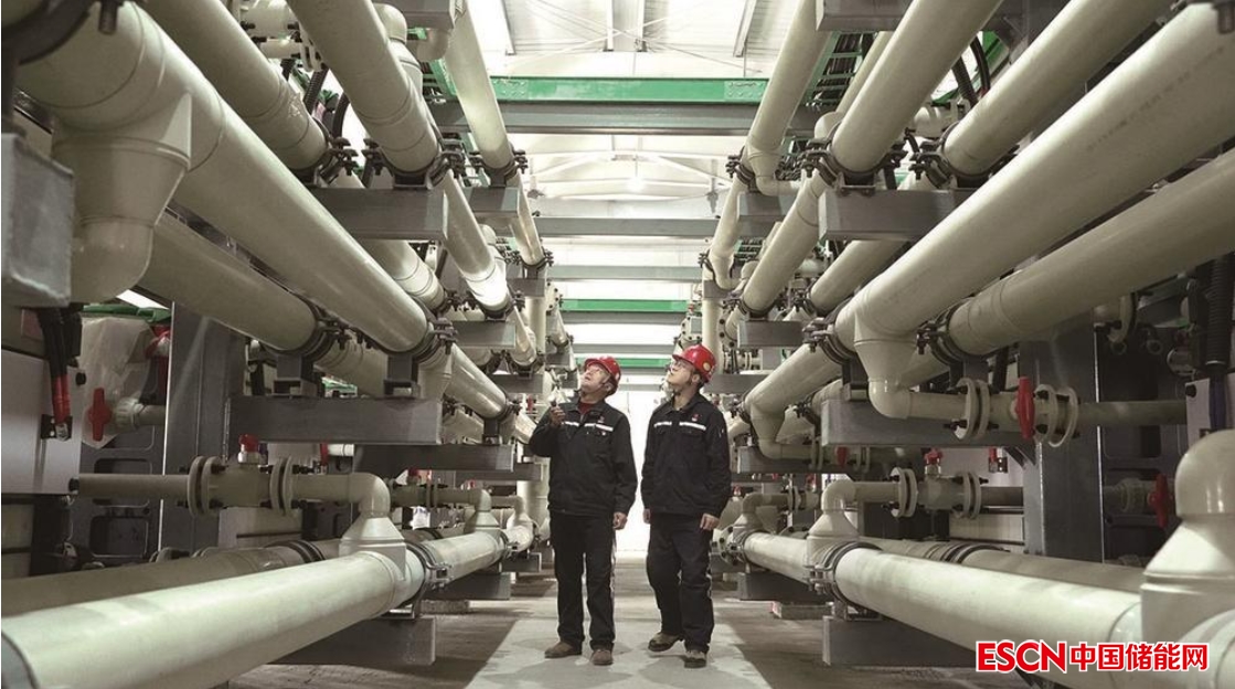 2023年2月28日,全球最大容量、我國(guó)首個(gè)兆瓦級(jí)鐵-鉻液流電池儲(chǔ)能示范項(xiàng)目在內(nèi)蒙古成功試運(yùn)行,即將投入商用。該項(xiàng)目由國(guó)家電投內(nèi)蒙古公司投資建設(shè),共安裝了34臺(tái)我國(guó)自主研發(fā)的“容和一號(hào)”電池堆和四組儲(chǔ)罐組成的儲(chǔ)能系統(tǒng),利用電解液中的鐵離子和鉻離子的化學(xué)特性把電能儲(chǔ)存起來(lái),可以將6000度電儲(chǔ)存6小時(shí)。