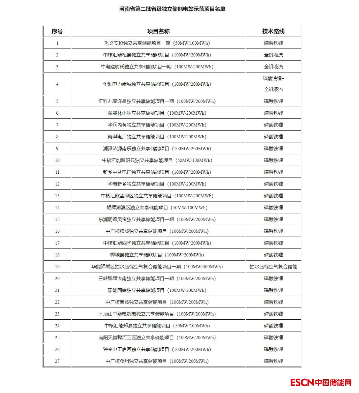 值得一提的是,2月14日,河南省發(fā)改委公示了第二批省級獨立儲能電站示范項目遴選結(jié)果,本批次共有27個儲能電站入選,總規(guī)模達2.5GW/5.2GWh,技術(shù)路線以磷酸鐵鋰為主,也涉及全釩液流及抽水壓縮空氣復合儲能等技術(shù)路線。