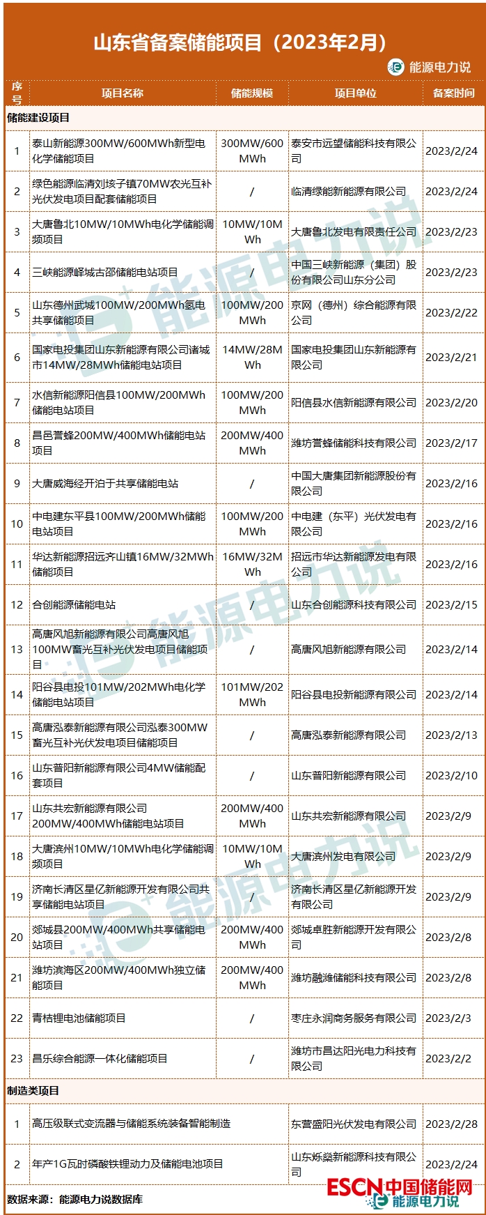 2月,山東省備案儲能項目25個,總規(guī)模約超1.5GW,項目以新能源配儲能、獨立共享儲能為主。