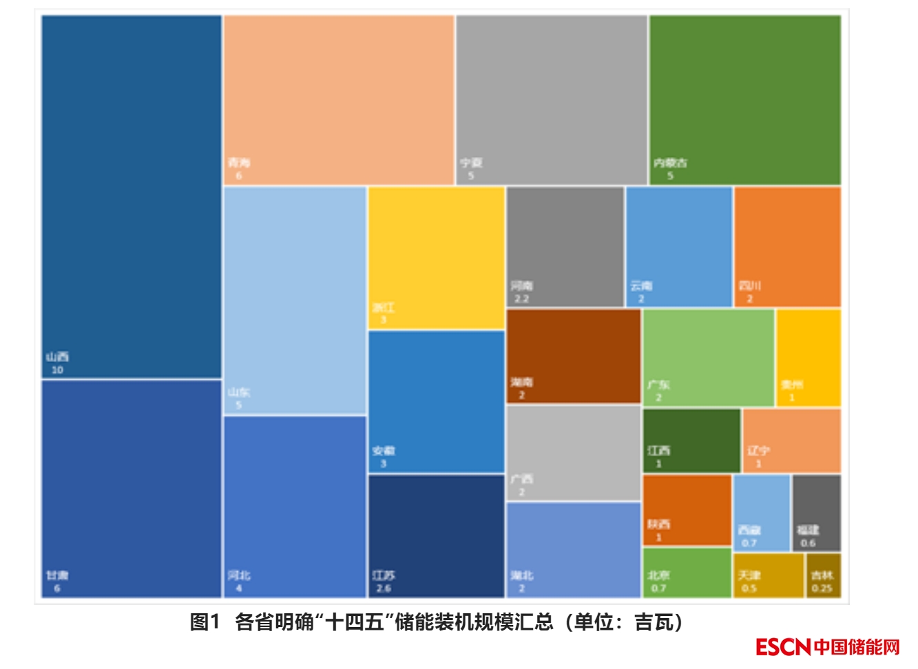 圖1 各省明確“十四五”儲能裝機規(guī)模匯總(單位:吉瓦)