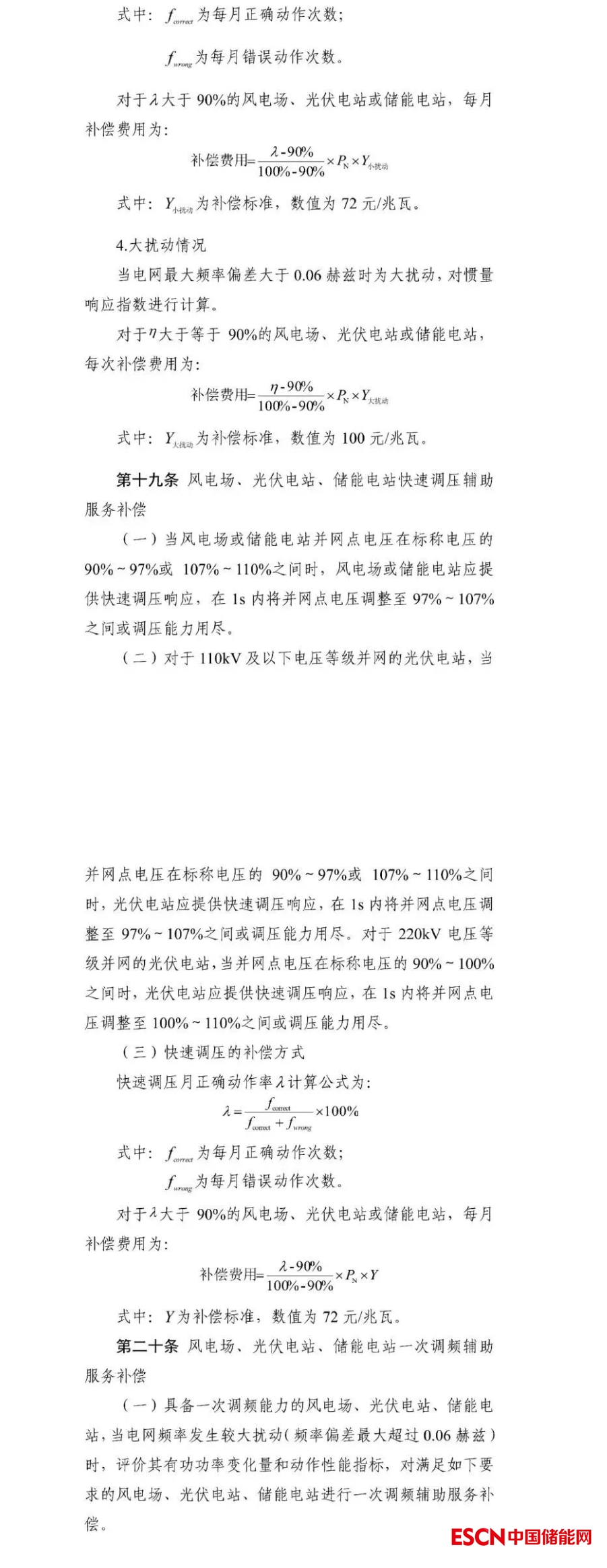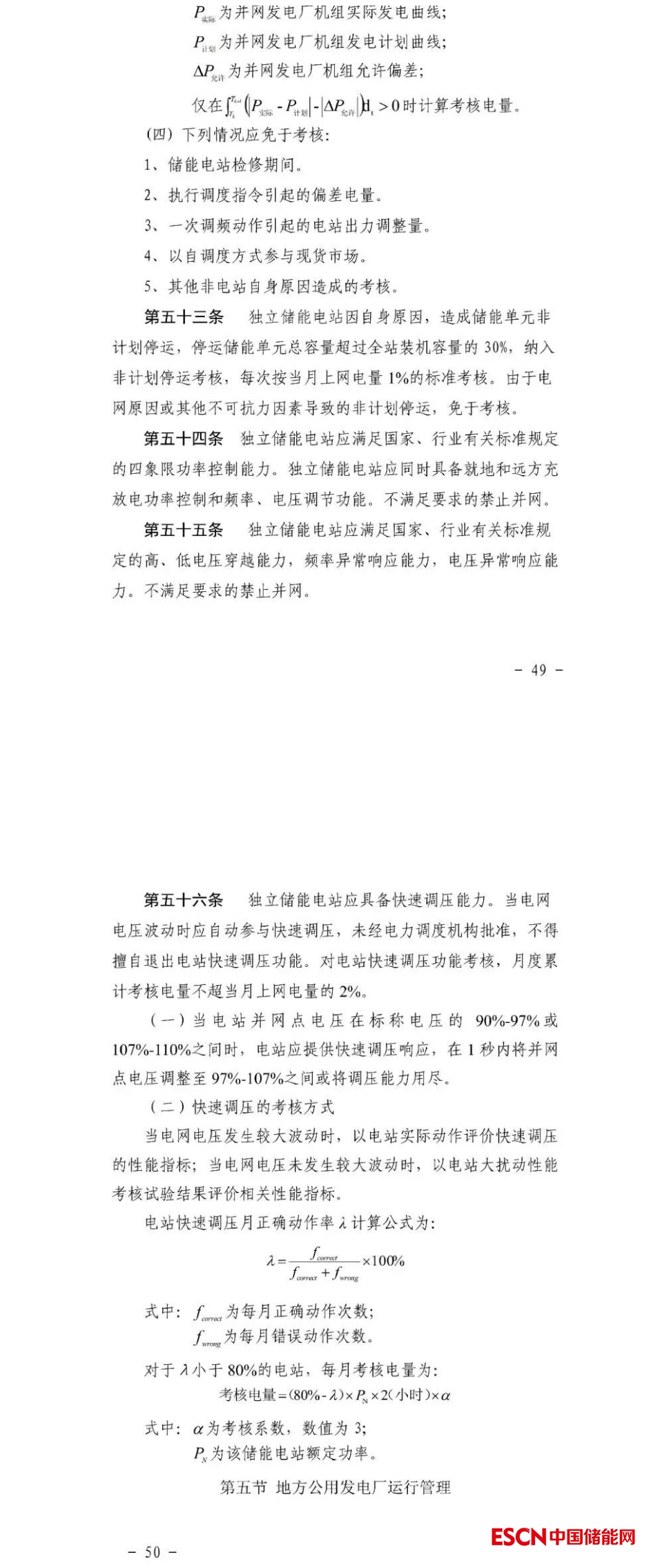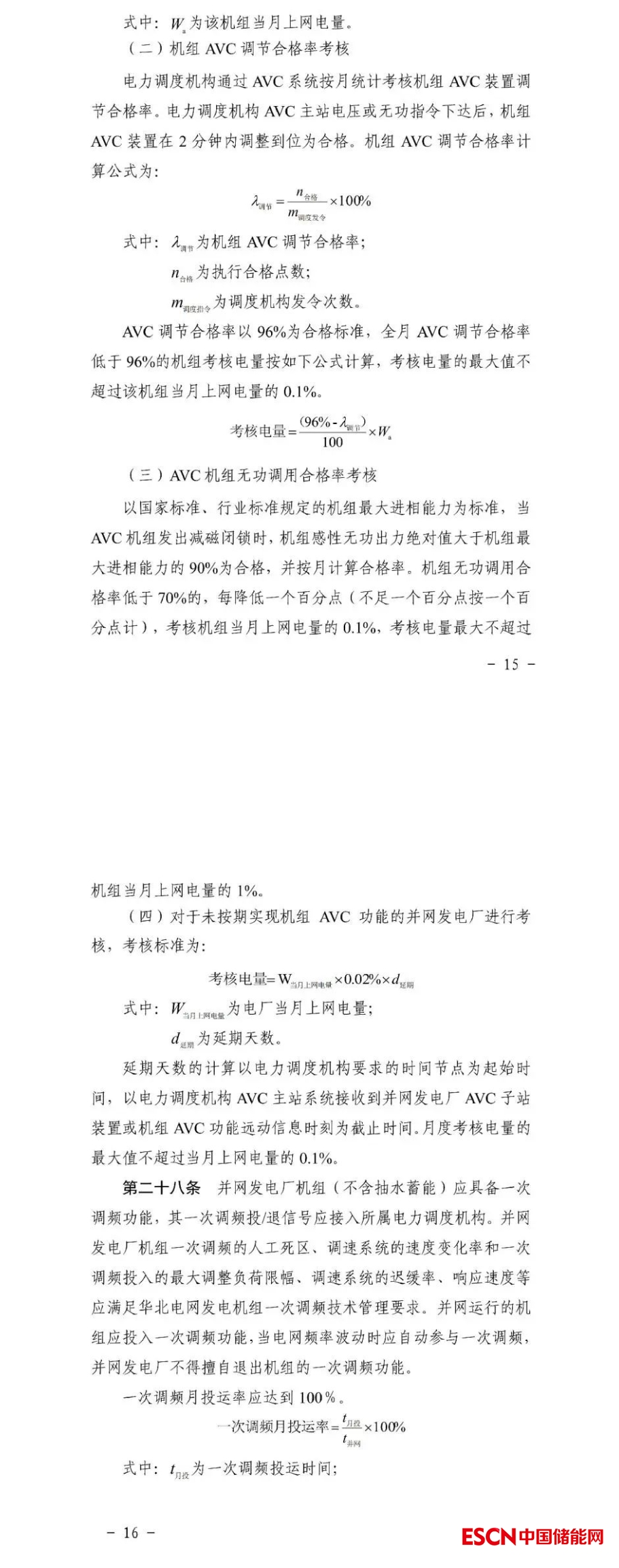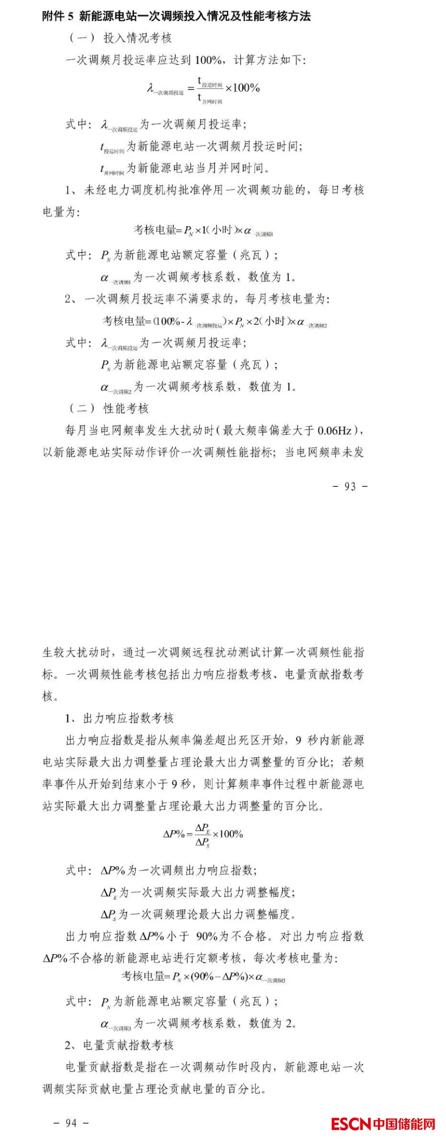 獨(dú)立儲(chǔ)能電站應(yīng)具備一次調(diào)頻功能,并保持一次調(diào)頻功能投入,一次調(diào)頻投/退信號(hào)應(yīng)接入電力調(diào)度機(jī)構(gòu)。獨(dú)立儲(chǔ)能電站一次調(diào)頻的死區(qū)、調(diào)節(jié)容量、調(diào)節(jié)速率、調(diào)節(jié)精度、響應(yīng)時(shí)間等性能指標(biāo)應(yīng)滿足國(guó)家標(biāo)準(zhǔn)要求。當(dāng)電網(wǎng)頻率波動(dòng)時(shí)應(yīng)自動(dòng)參與一次調(diào)頻,未經(jīng)電力調(diào)度機(jī)構(gòu)批準(zhǔn),不得擅自退出一次調(diào)頻功能。對(duì)獨(dú)立儲(chǔ)能電站一次調(diào)頻的可用率和性能進(jìn)行考核,月度累計(jì)考核電量不超當(dāng)月上網(wǎng)電量1%。
