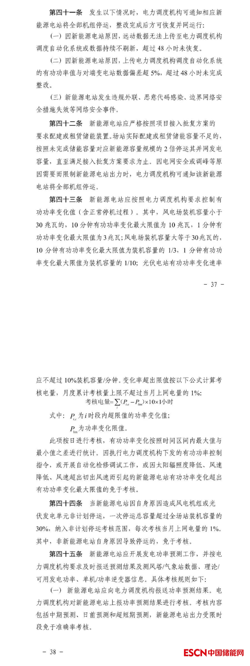 新能源電站應(yīng)嚴(yán)格按照項(xiàng)目接入批復(fù)方案的要求配建或租賃儲(chǔ)能裝置。場(chǎng)站實(shí)際配建或租賃儲(chǔ)能容量不足的,按照未完成儲(chǔ)能容量對(duì)應(yīng)新能源容量規(guī)模的2倍停運(yùn)其并網(wǎng)發(fā)電容量,直至滿足接入批復(fù)方案要求為止。因電網(wǎng)安全或調(diào)峰等原因需要而限制新能源電站出力時(shí),電力調(diào)度機(jī)構(gòu)可通知該新能源電站將全部機(jī)組停運(yùn)。