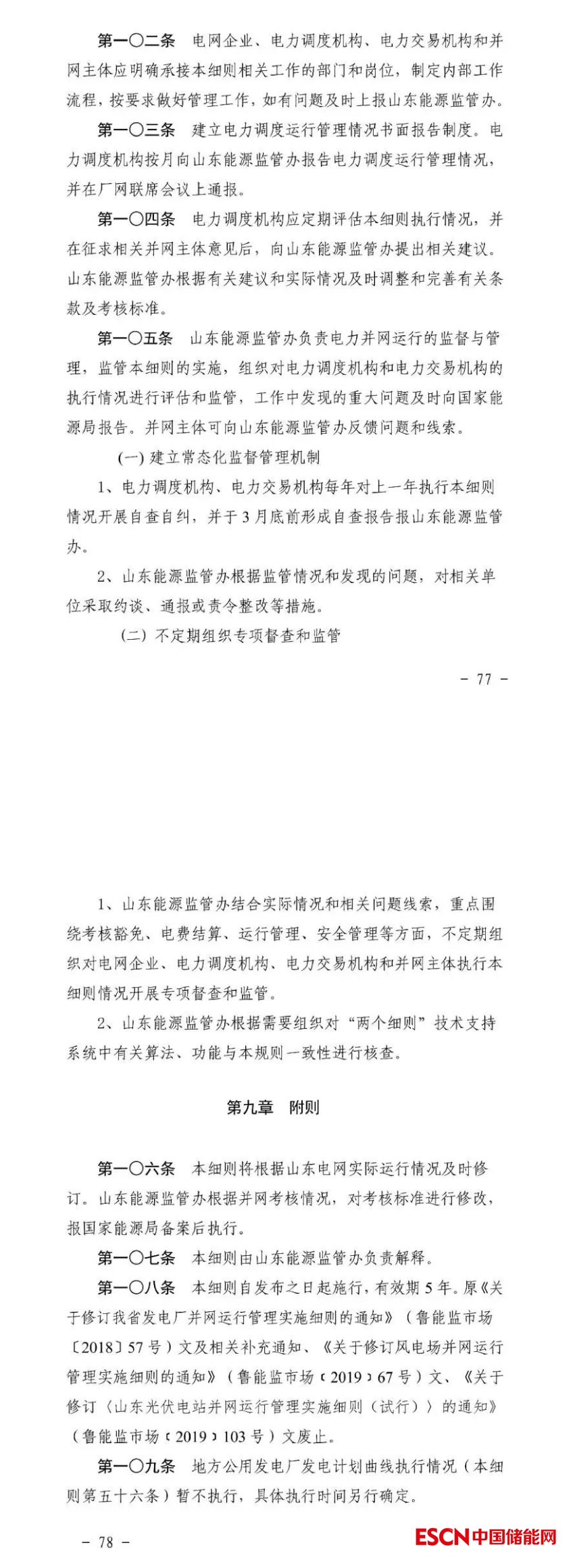 中國(guó)儲(chǔ)能網(wǎng)訊:3月8日,國(guó)家能源局山東監(jiān)管辦公室發(fā)布關(guān)于征求《山東省電力并網(wǎng)運(yùn)行管理實(shí)施細(xì)則(2023年修訂版)》《山東省電力輔助服務(wù)管理實(shí)施細(xì)則(2023年修訂版)》規(guī)范性文件意見的通知。