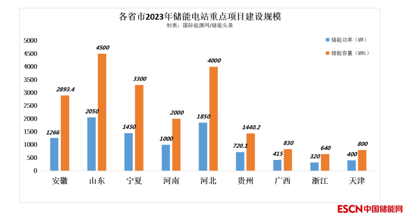 據(jù)據(jù)國際能源網(wǎng)/儲能頭條(微信號:chuneng365)統(tǒng)計,截至目前,2023年安徽、山東、寧夏、河南、河北、貴州、廣西、浙江、天津等9個地方重點儲能建設(shè)項目累計達(dá)57個,規(guī)??傆嬤_(dá)9.5GW/20.4GWh。