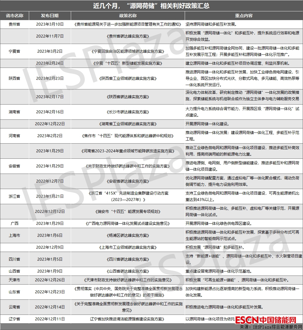 此外,貴州、浙江、陜西等多省也將“源網(wǎng)荷儲(chǔ)”納入政策。據(jù)IESPlaza綜合能源服務(wù)網(wǎng)統(tǒng)計(jì),近幾個(gè)月以來(lái),各省市相繼出臺(tái)了近25份相關(guān)利好政策,具體如下: