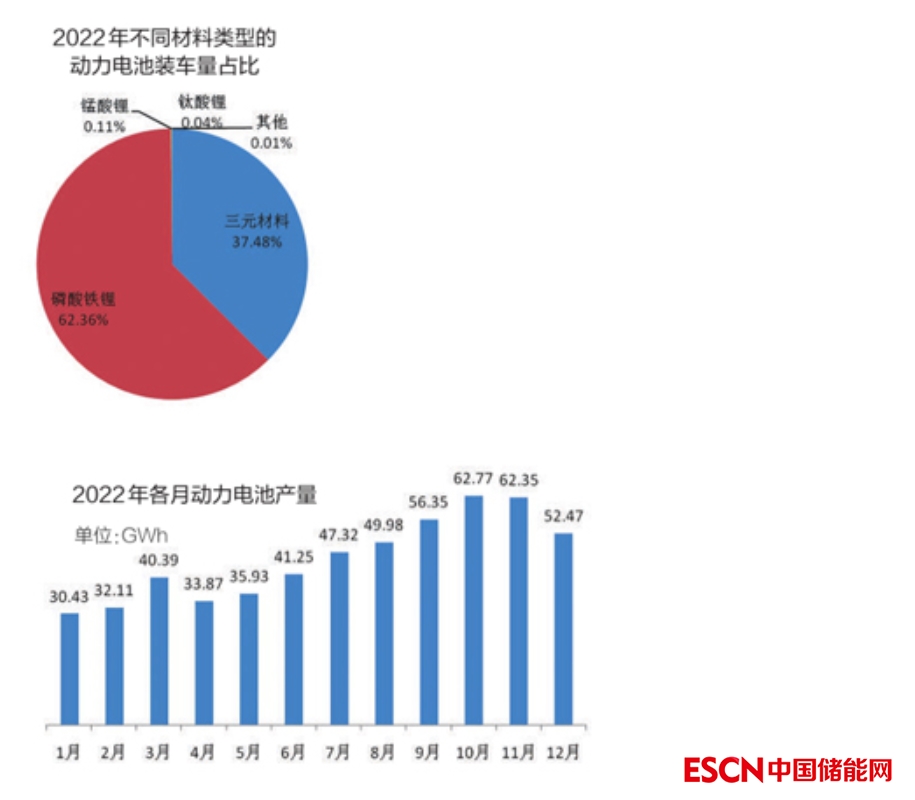 2022年,我國動力電池產(chǎn)量為545.9GWh,同比增長148.5%。其中,三元電池占比38.9%,同比增長126.4%;磷酸鐵鋰電池占比60.9%,同比增長165.1%。錳酸鋰和鈦酸鋰電池目前產(chǎn)量相對較少,合計占比僅0.2%。