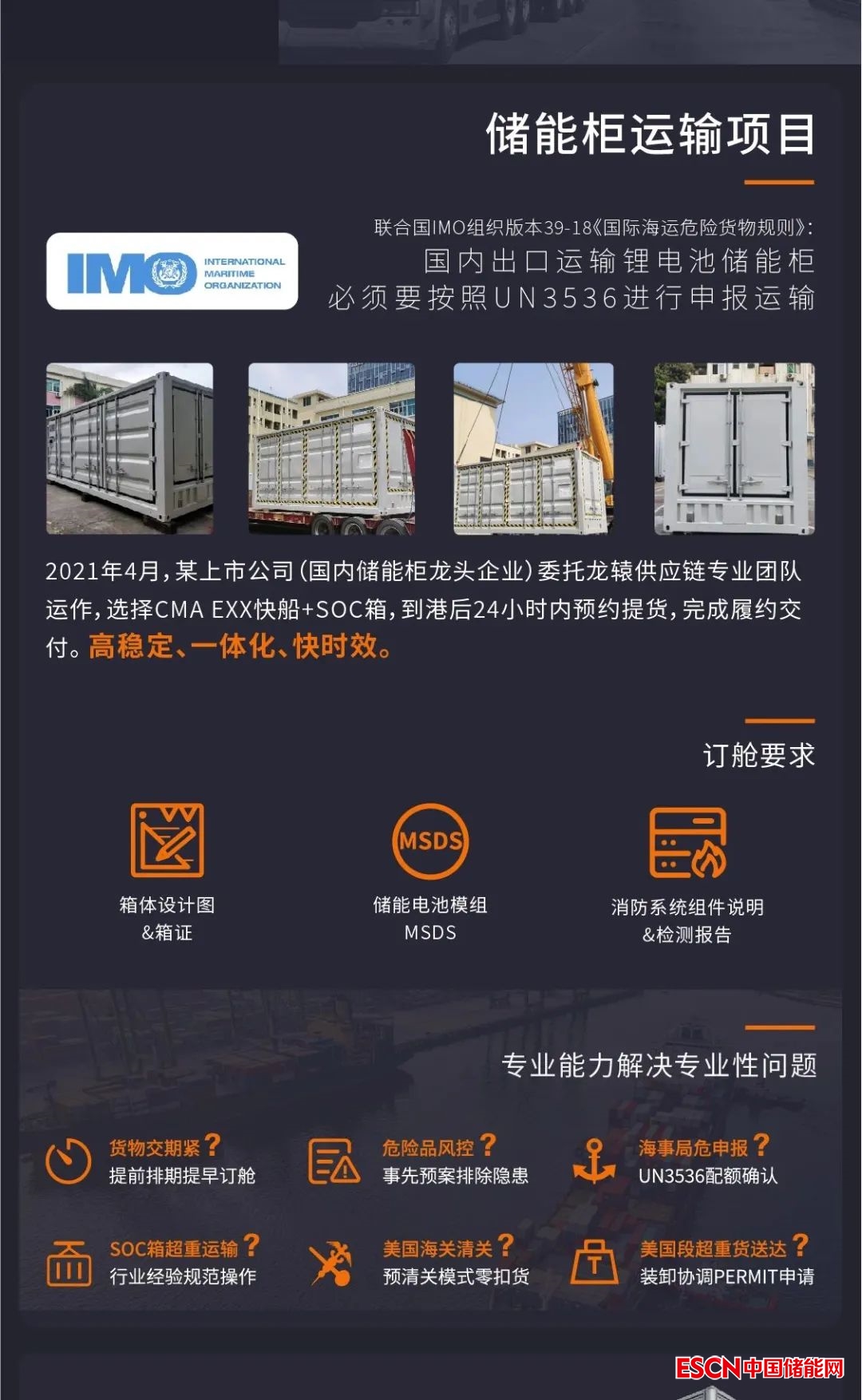 2021年4月,儲能柜運輸項目