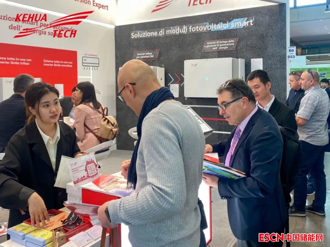 科華數(shù)能在意大利新能源行業(yè)深耕多年,此次展出憑借兼具簡約和設(shè)計美學的展臺設(shè)計和優(yōu)質(zhì)產(chǎn)品為世界各地匯集而來的參展者帶來了一場與商機碰撞的極致參展體驗。在為期兩天的展會中,科華展臺人流不息,合作伙伴、媒體、行業(yè)專家輪流到訪。期間,科華數(shù)能技術(shù)專家在現(xiàn)場細心講解,向客戶展示了科華全場景創(chuàng)新方案和前沿的新能源技術(shù),共同探討、挖掘意大利市場發(fā)展新機遇。