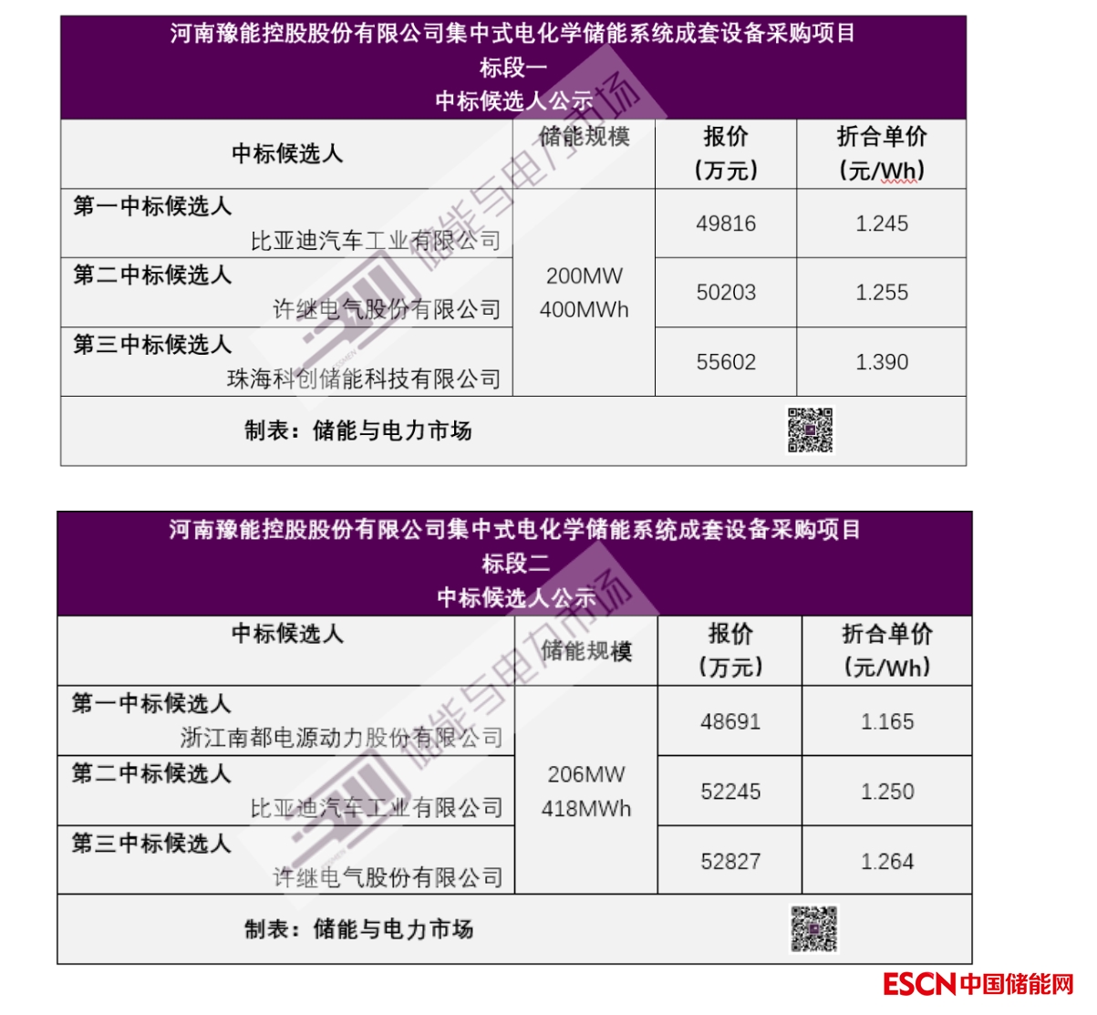 標(biāo)段一,200MW/400MWh儲(chǔ)能系統(tǒng)采購(gòu),比亞迪汽車(chē)工業(yè)有限公司以總報(bào)價(jià)49816萬(wàn)元,折合單價(jià)1.245元/Wh,成為第一中標(biāo)候選人;