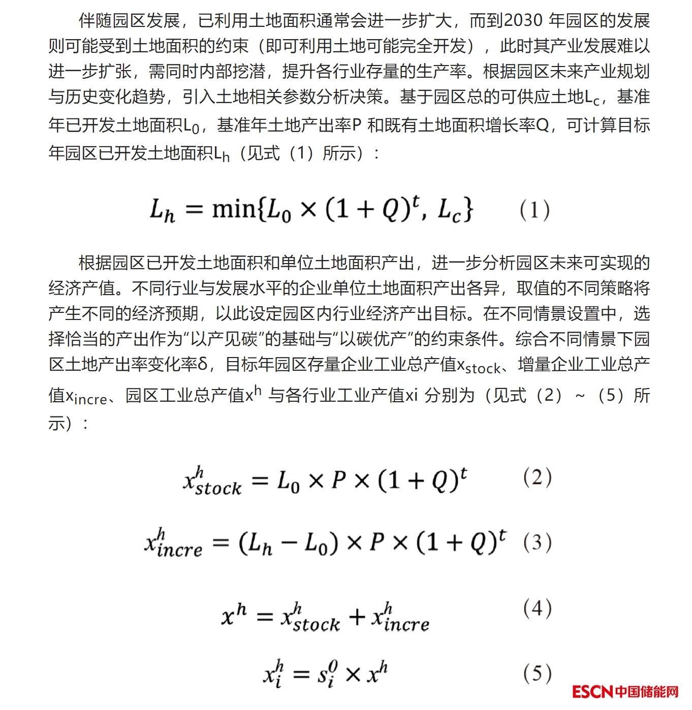 園區(qū)碳達(dá)峰模型設(shè)計(jì)應(yīng)基于存量產(chǎn)業(yè)特征、未來(lái)產(chǎn)業(yè)發(fā)展規(guī)劃、土地存量、可用余量、開發(fā)速度與碳排放歷史變化趨勢(shì)等,研究慣性產(chǎn)業(yè)發(fā)展結(jié)構(gòu)與模式下園區(qū)的能源消耗、資源使用、全生命周期碳足跡,揭示基準(zhǔn)情景下園區(qū)的碳排放峰值。根據(jù)在不同的工業(yè)規(guī)模與碳生產(chǎn)率提升情景下,園區(qū)內(nèi)各個(gè)產(chǎn)業(yè)對(duì)標(biāo)國(guó)內(nèi)外資源能源使用效率先進(jìn)水平的潛在提升空間,面向園區(qū)經(jīng)濟(jì)發(fā)展預(yù)期、環(huán)境約束性指標(biāo)、資源能源消耗與碳排放“雙控”目標(biāo),設(shè)置合適的園區(qū)總體碳配額優(yōu)化配置算法,搭建多準(zhǔn)則約束下碳排放與經(jīng)濟(jì)增長(zhǎng)脫鉤決策模型,設(shè)計(jì)碳配額在各產(chǎn)業(yè)部門間最合適的分配方案。