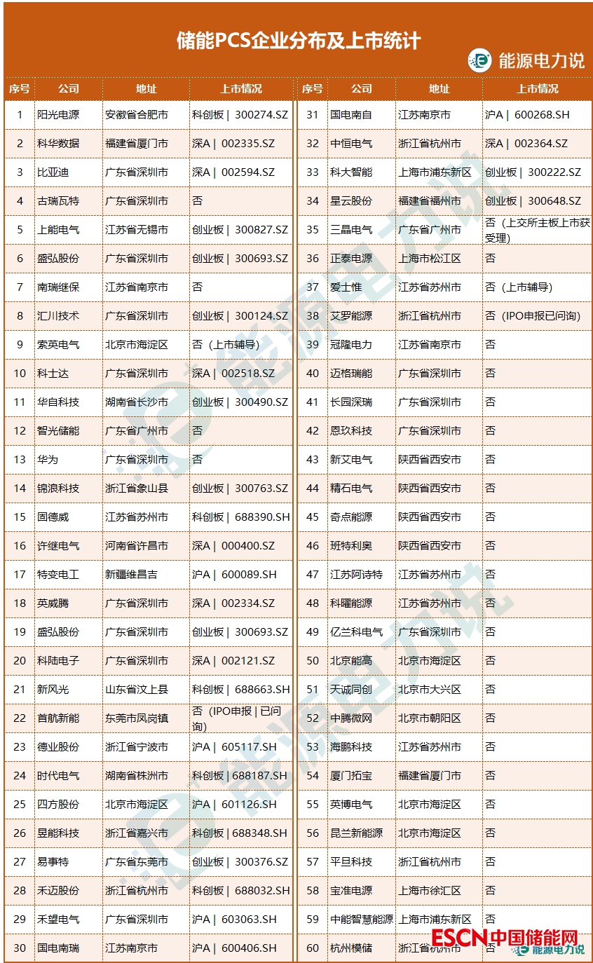 儲(chǔ)能PCS相關(guān)廠商如下(不完全統(tǒng)計(jì)):