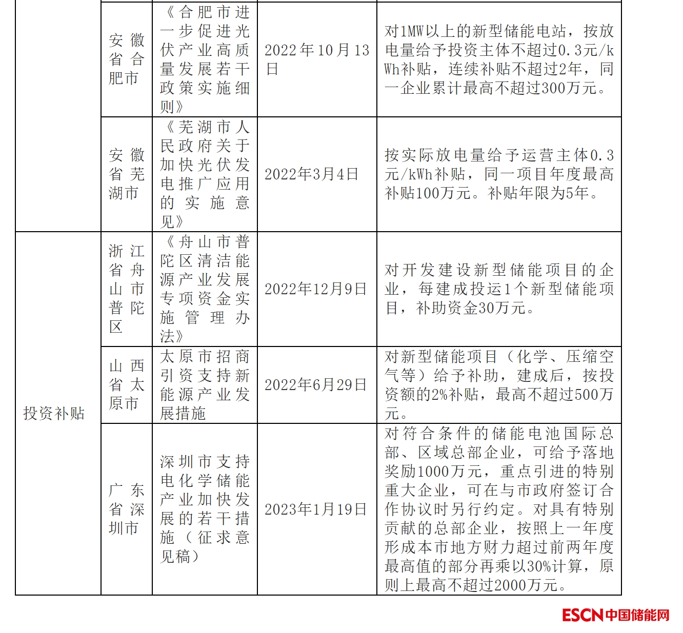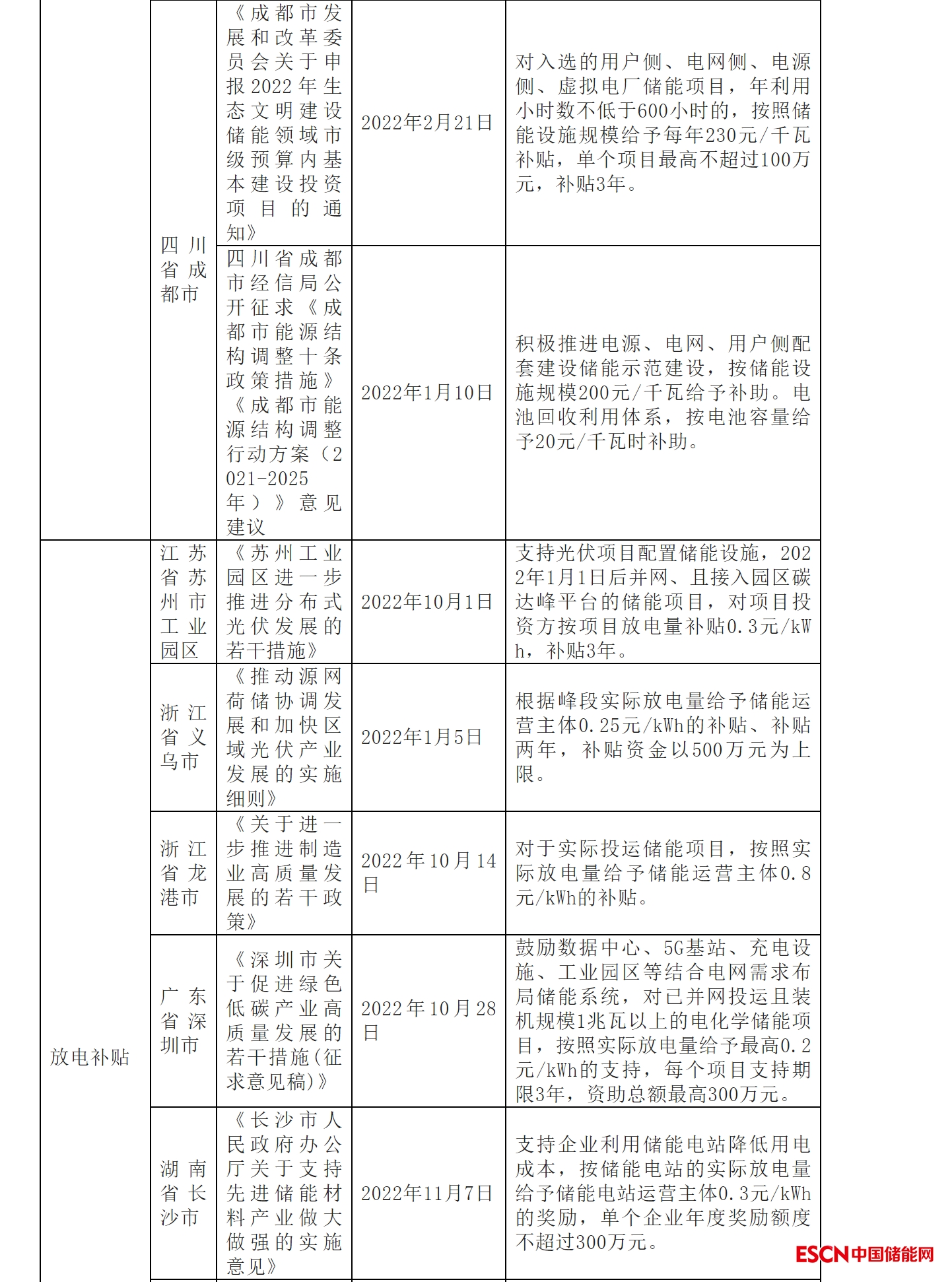 (七)部分地區(qū)關(guān)于儲能的地方性補貼政策