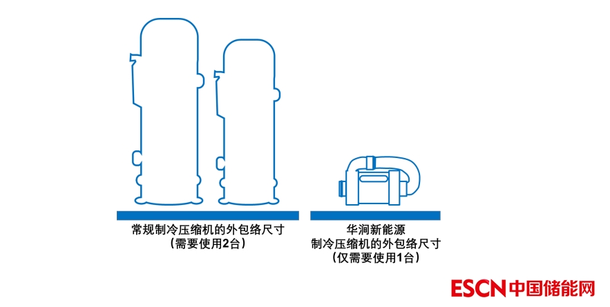 圖1 華澗新能源制冷壓縮機與常規(guī)產品的外包絡尺寸對比