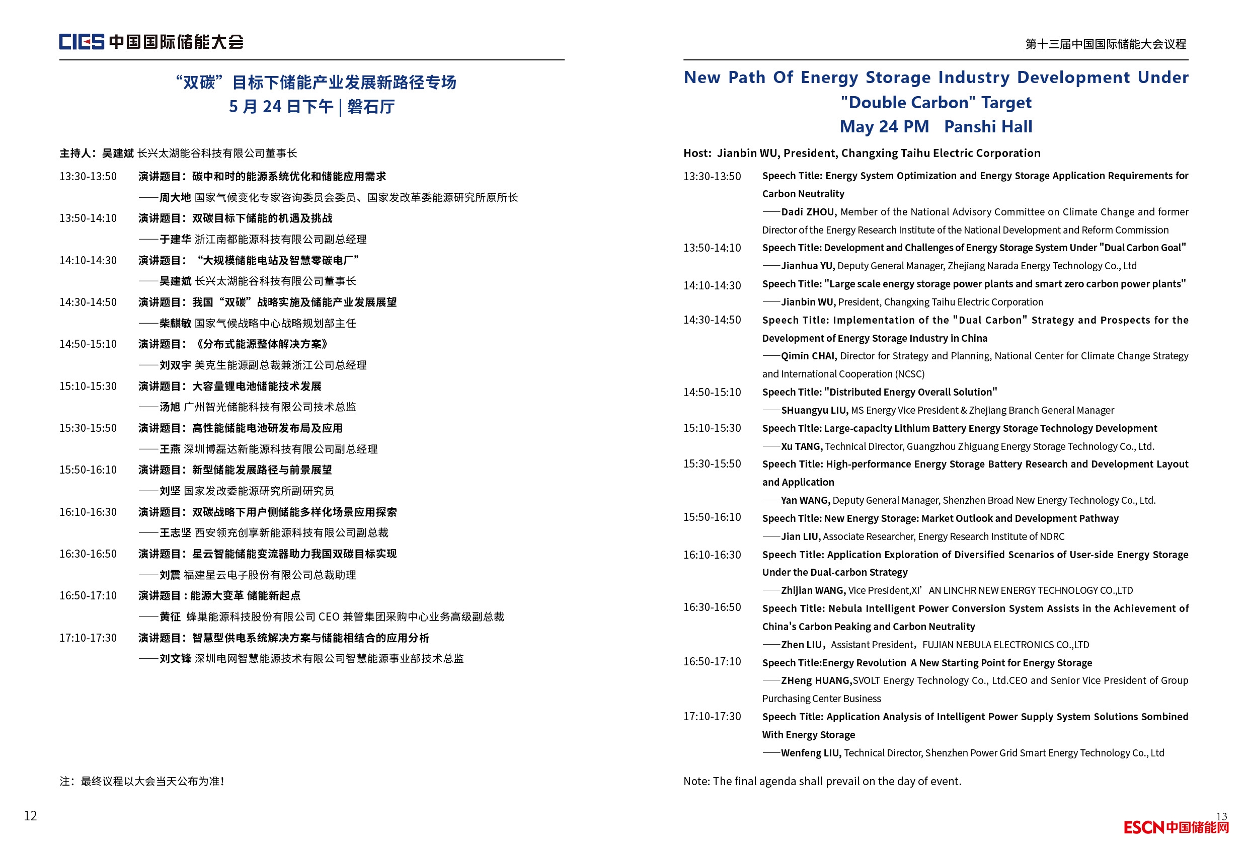 本屆大會(huì)將設(shè)置安排:大會(huì)開幕式暨院士/專家主題報(bào)告、“雙碳”目標(biāo)下 儲(chǔ)能產(chǎn)業(yè)發(fā)展新路徑專場(chǎng)、新型電力系統(tǒng)與儲(chǔ)能系統(tǒng)整體解決方案專場(chǎng)、儲(chǔ)能安全與系統(tǒng)集成專場(chǎng)、共享儲(chǔ)能專場(chǎng)、新型儲(chǔ)能系統(tǒng)集成解決方案專場(chǎng)、用戶側(cè)儲(chǔ)能與虛擬電廠專場(chǎng)、儲(chǔ)能安全與消防系統(tǒng)專場(chǎng)、長(zhǎng)時(shí)儲(chǔ)能技術(shù)及應(yīng)用專場(chǎng)、儲(chǔ)能檢測(cè)、認(rèn)證與標(biāo)準(zhǔn)專場(chǎng)、鋰離子電池與儲(chǔ)能系統(tǒng)設(shè)計(jì)專場(chǎng)、智能微電網(wǎng)及分布式能源專場(chǎng)、儲(chǔ)能資本市場(chǎng)專場(chǎng)(上、下)、儲(chǔ)能與電力市場(chǎng)專場(chǎng)、中國(guó)西北儲(chǔ)能市場(chǎng)專場(chǎng)、溫控系統(tǒng)及電氣設(shè)備專場(chǎng)等 17個(gè)專場(chǎng)論壇。
