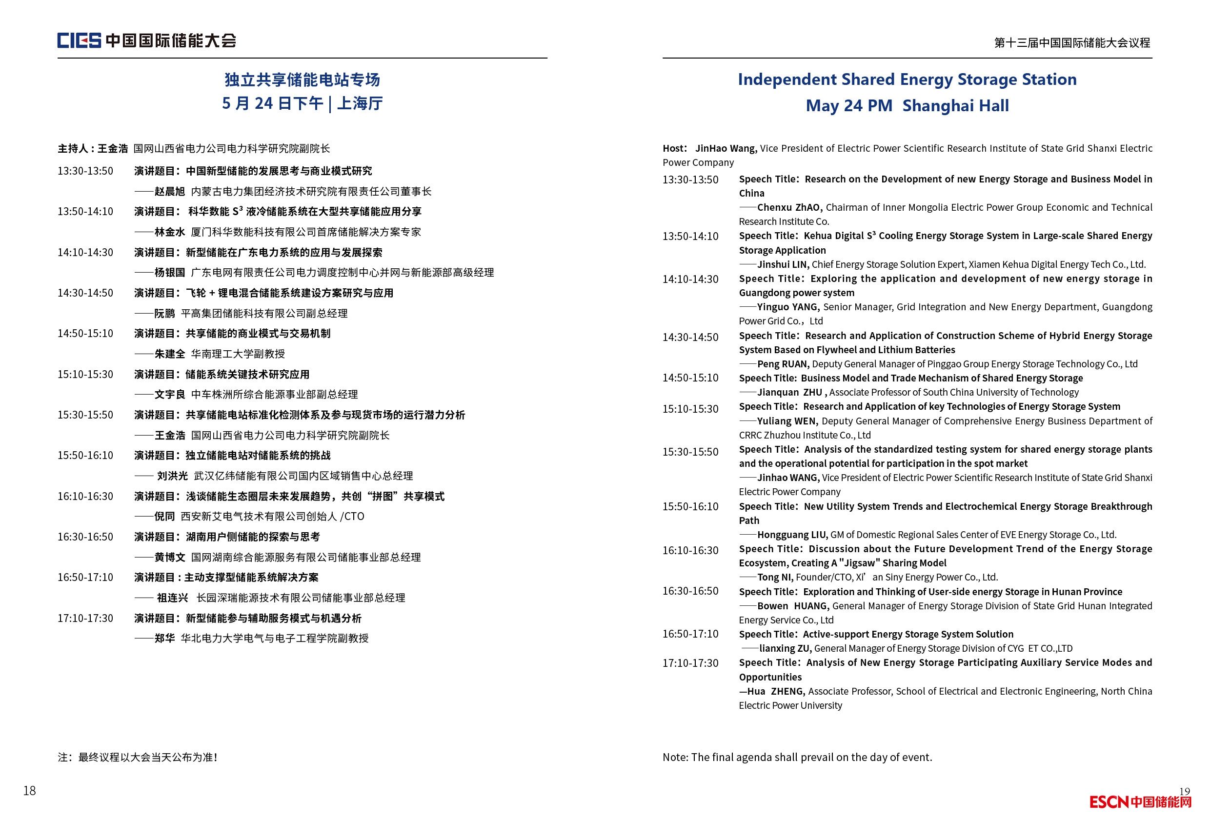 中國儲能網(wǎng)訊:由中國化學(xué)與物理電源行業(yè)協(xié)會主辦,中國化學(xué)與物理電源行業(yè)協(xié)會儲能應(yīng)用分會和中國儲能網(wǎng)聯(lián)合承辦,中國化學(xué)與物理電源行業(yè)協(xié)會儲能應(yīng)用分會專家委員會提供學(xué)術(shù)支持的第十三屆中國國際儲能大會將于2023年5月24-26日在杭州洲際酒店召開。以下為共享儲能專場議程(最終議程以活動當(dāng)天公布為準(zhǔn)):