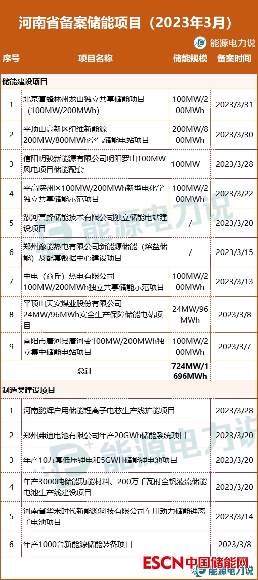 3月,河南省備案儲(chǔ)能項(xiàng)目15個(gè),其中儲(chǔ)能建設(shè)項(xiàng)目9個(gè),儲(chǔ)能產(chǎn)品制造類(lèi)項(xiàng)目6個(gè)。