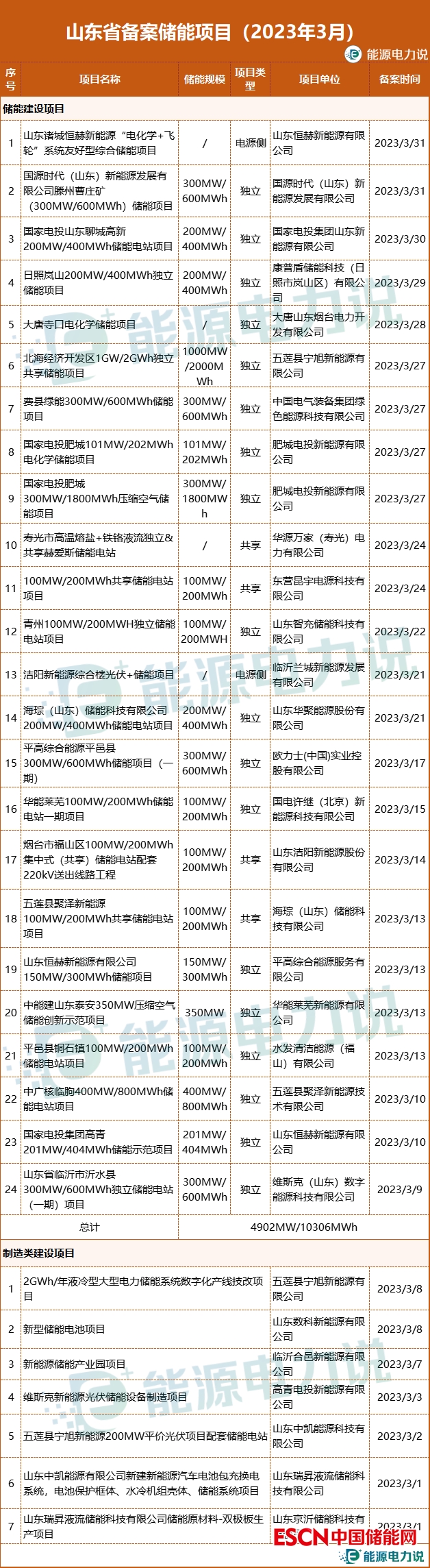 3月,山東省備案儲(chǔ)能項(xiàng)目31個(gè),其中儲(chǔ)能建設(shè)項(xiàng)目24個(gè),儲(chǔ)能產(chǎn)品制造類(lèi)項(xiàng)目7個(gè)。