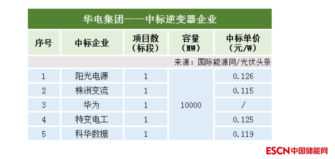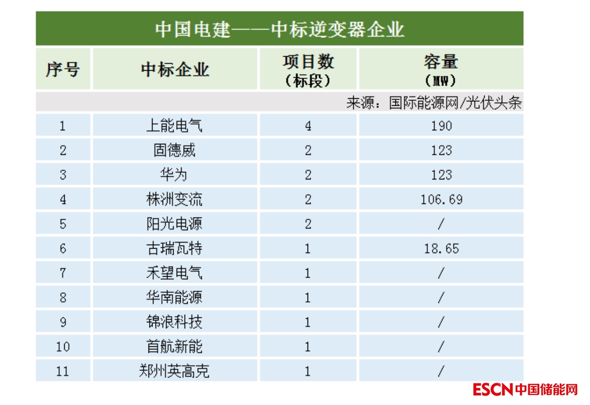 上能、陽光、古瑞瓦特領(lǐng)銜中標(biāo)榜
