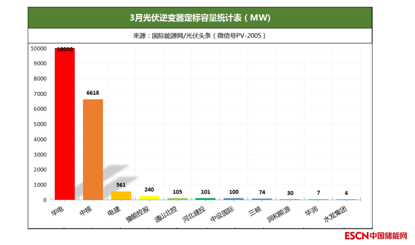 國際能源網(wǎng)/光伏頭條(PV-2005)統(tǒng)計(jì),3月1日-3月31日國內(nèi)逆變器招投標(biāo)市場,上能電氣、陽光電源、古瑞瓦特、華為、固德威、株洲變流等18家企業(yè),共同贏得了17.84GW的逆變器招標(biāo)采購訂單。