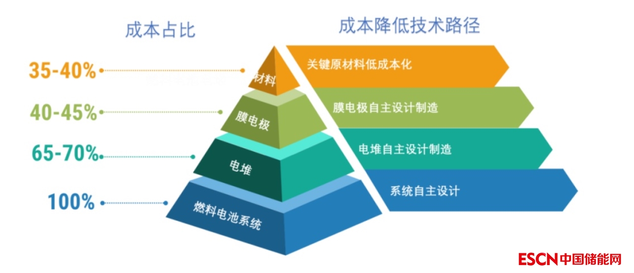電堆是燃料電池系統(tǒng)中最關(guān)鍵的部件,其技術(shù)水平基本上決定了燃料電池系統(tǒng)的性能,成本占據(jù)了燃料電池系統(tǒng)的65%-70%。昔日,燃料電池電堆中的膜電極核心材料,包括質(zhì)子交換膜、碳紙、氣體擴(kuò)散層被國(guó)外廠商高度壟斷,采購(gòu)價(jià)格不菲,極大地制約了我國(guó)燃料電池汽車產(chǎn)業(yè)的發(fā)展。