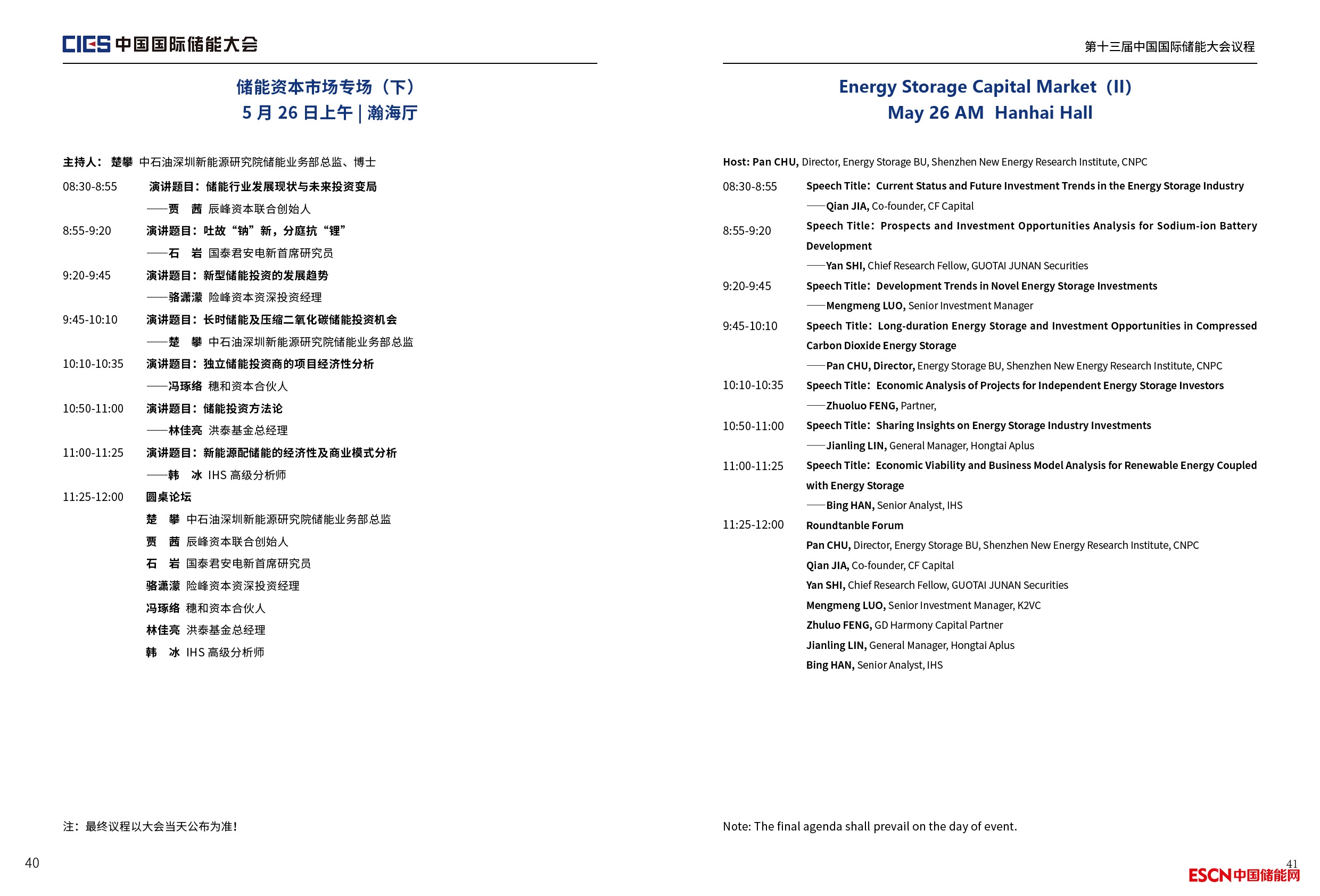 中國儲能網(wǎng)訊:由中國化學(xué)與物理電源行業(yè)協(xié)會主辦,中國化學(xué)與物理電源行業(yè)協(xié)會儲能應(yīng)用分會和中國儲能網(wǎng)聯(lián)合承辦,中國化學(xué)與物理電源行業(yè)協(xié)會儲能應(yīng)用分會專家委員會提供學(xué)術(shù)支持的第十三屆中國國際儲能大會將于2023年5月24-26日在杭州洲際酒店召開。以下為儲能資本市場專場(下)議程(最終議程以活動當(dāng)天公布為準(zhǔn)):
