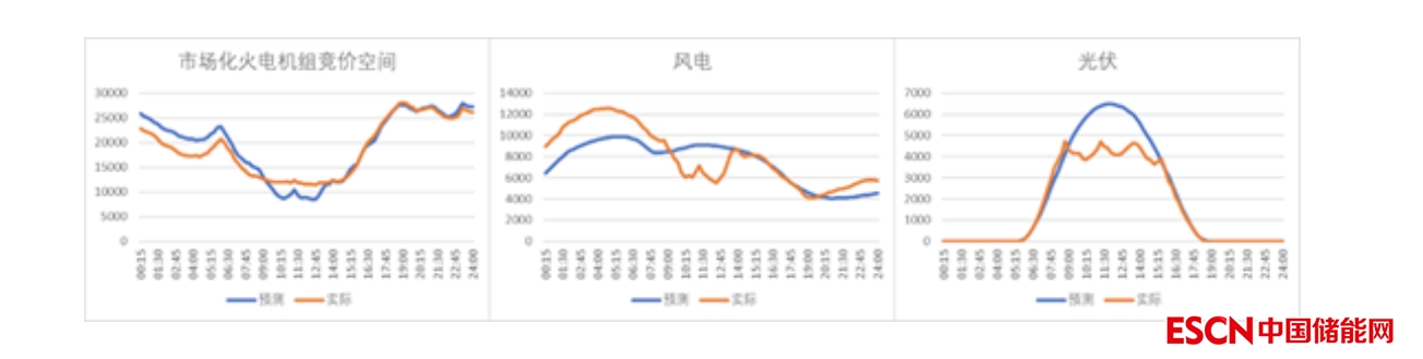 圖3 某日市場化火電機組出力空間及風電、光伏出力預測與實際數(shù)據(jù)