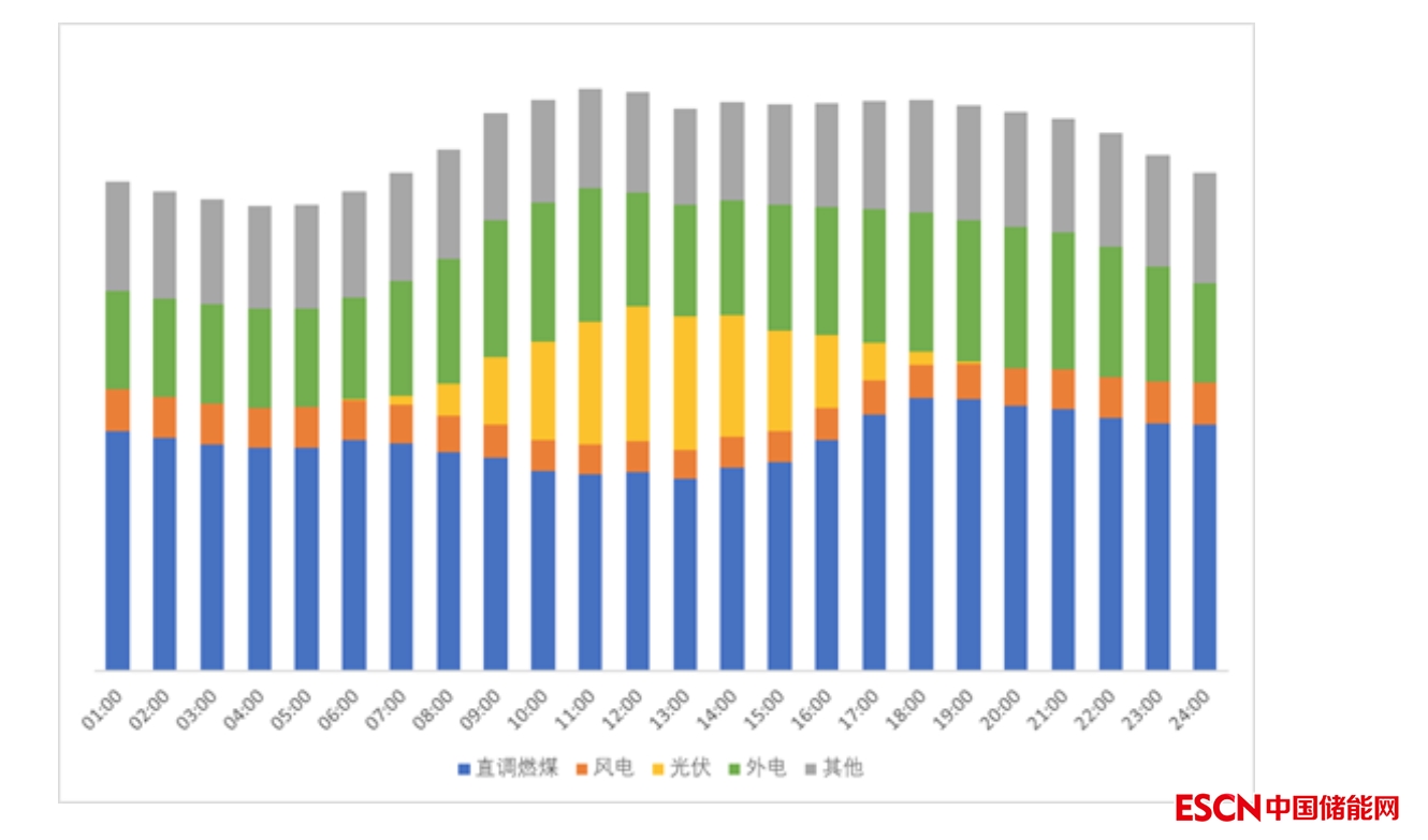 從全年數(shù)據(jù)來看,光伏出力主要集中在9點至16點之間,這段時間內(nèi)光伏發(fā)電量占比達19%、火電發(fā)電量占比僅36%;而在其他時段,光伏發(fā)電量占比僅1%,火電發(fā)電量占比超過47%。與省內(nèi)火電相比,省外來電的調(diào)節(jié)幅度則明顯要小得多,在光伏出力最為集中的午間時段,外電的電量占比依然超過了20%;而在夜間高峰時段,外電電量占比也只有25%。