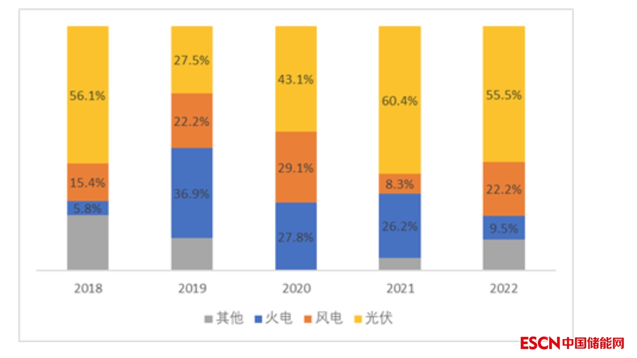 圖1 該省近5年新增裝機成分占比