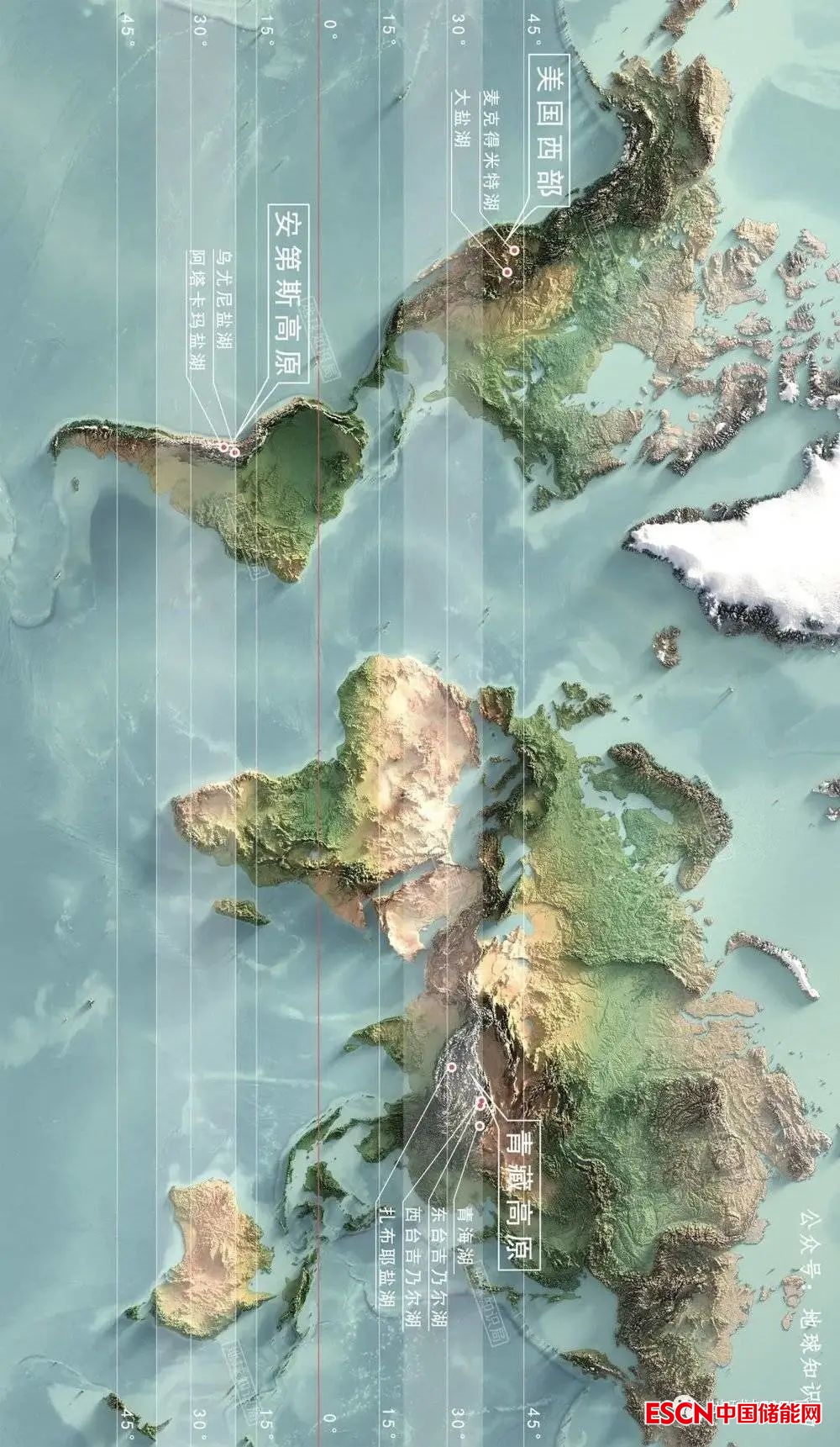 由于這種礦床的形成條件十分獨(dú)特,在全球主要分布在三大鹽湖集中區(qū):南美安第斯高原、美國西部高原和中國青藏高原。這3個(gè)地方全都是板塊碰撞的產(chǎn)物,也都有活躍的地質(zhì)活動(dòng),玻利維亞阿塔卡馬鹽湖、美國大鹽湖、中國的扎布耶鹽湖都是其中的代表。