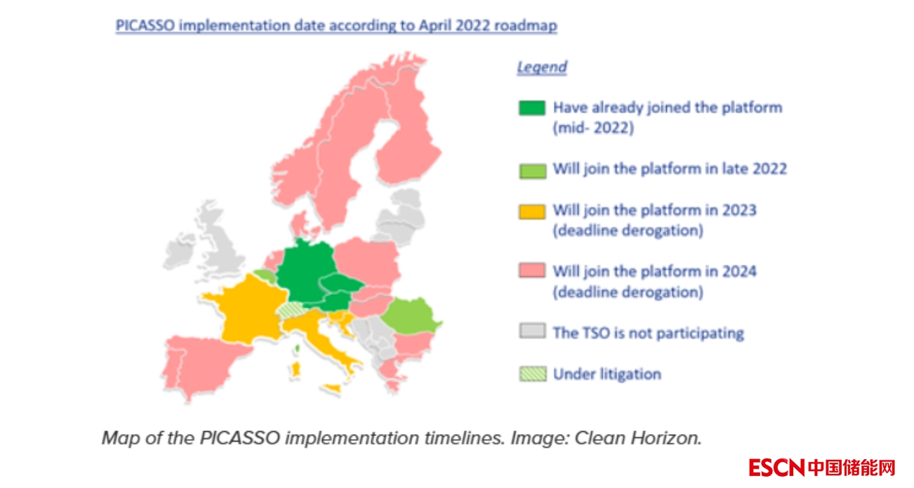 在整個(gè)歐洲,已經(jīng)有26個(gè)國(guó)家表示有興趣加入PICASSO平臺(tái),每個(gè)國(guó)家都有自己的時(shí)間表,如下圖所示。下面以德國(guó)為例,看一下歐洲二級(jí)儲(chǔ)備市場(chǎng)的開(kāi)放情況。