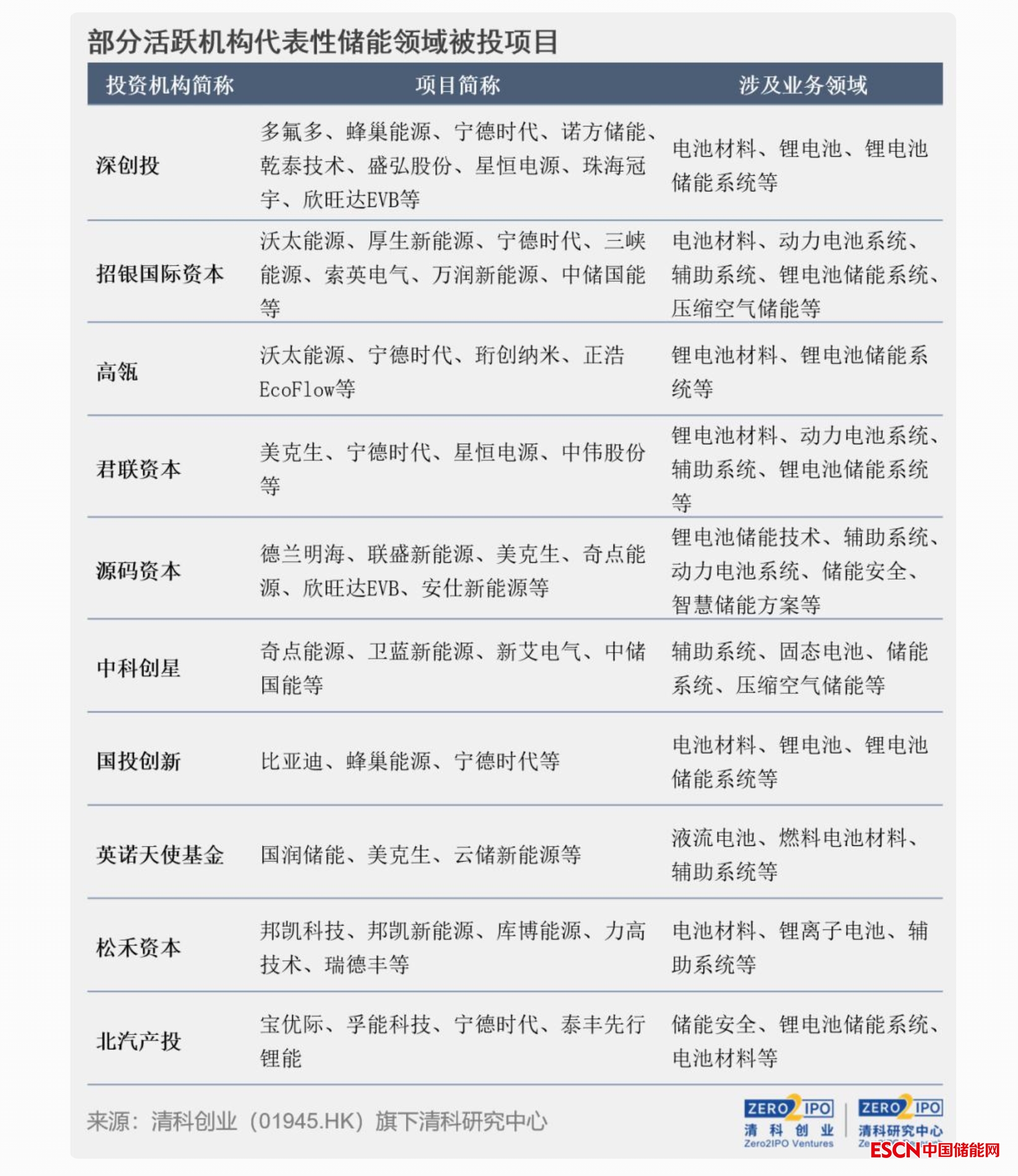 近年在儲能領(lǐng)域較為活躍的還有瞄準(zhǔn)前沿技術(shù)應(yīng)用的天使投資機構(gòu)。例如,中科創(chuàng)星除布局傳統(tǒng)鋰離子電池賽道外,還投資了研發(fā)固態(tài)鋰電池的衛(wèi)藍(lán)新能源、壓縮空氣儲能項目中儲國能等。英諾天使基金就關(guān)注儲能系統(tǒng)運營中可以實現(xiàn)降本增效的關(guān)鍵技術(shù),并對其他新型儲能技術(shù)與鋰離子電池儲能的混合儲能應(yīng)用前景保持關(guān)注,目前已布局國潤儲能、云儲新能源等儲能技術(shù)和輔助系統(tǒng)項目。