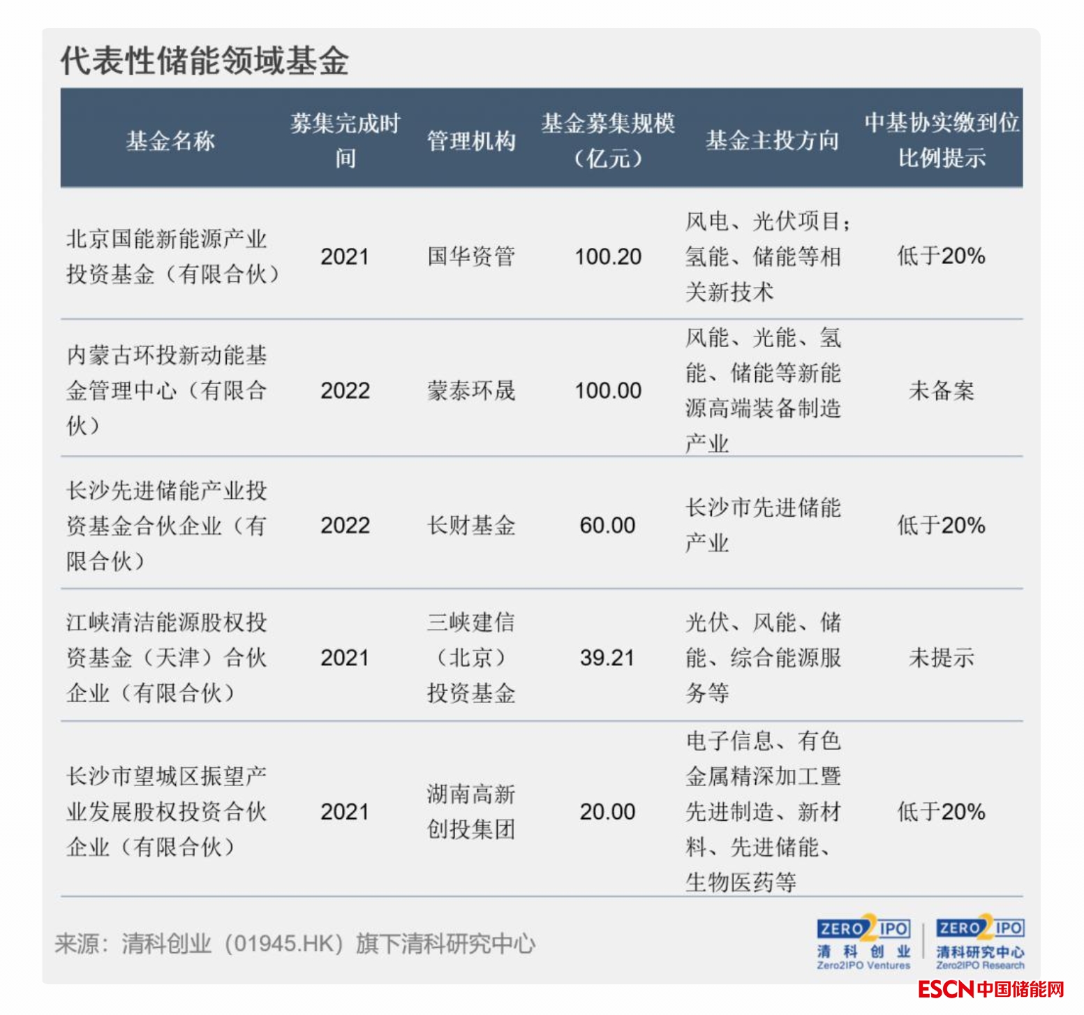 從基金管理人背景來看,參與設(shè)立儲能領(lǐng)域基金的管理人背景比較多元,既有與電力或清潔能源相關(guān)的產(chǎn)業(yè)資本,如國家能源集團下屬的中國神華、國華投資、三峽集團、寧德時代、保利資本、上汽投資、國網(wǎng)英大等;也有將儲能產(chǎn)業(yè)作為重點產(chǎn)業(yè)發(fā)展的地方國資背景管理人,如江蘇省投資管理、深創(chuàng)投等;此外,也有將新能源、綠色低碳、儲能等作為投資方向的市場化股權(quán)投資機構(gòu),如凱輝基金、源碼資本、IDG資本等。