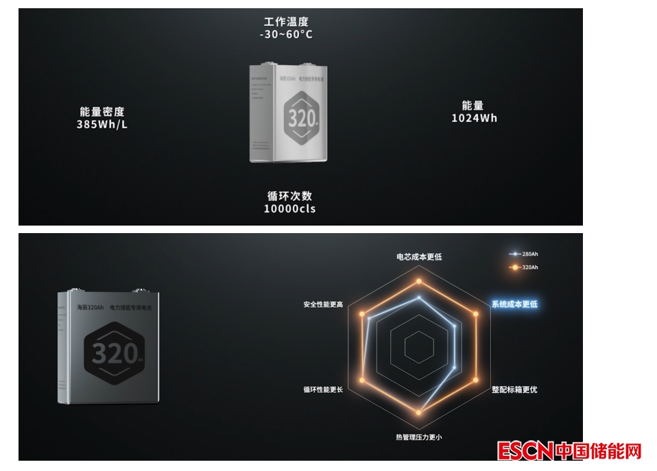 海辰儲(chǔ)能通過技術(shù)創(chuàng)新,推出320Ah新一代電力儲(chǔ)能專用電池,相比280Ah電池,海辰320Ah電池在電芯成本,系統(tǒng)成本,整箱標(biāo)配等多維度上更適配電力儲(chǔ)能市場(chǎng)應(yīng)用發(fā)展模式。