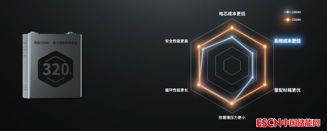 海辰儲能通過技術(shù)創(chuàng)新,推出320Ah新一代電力儲能專用電池,相比280Ah電池,海辰320Ah電池在電芯成本,系統(tǒng)成本,整箱標配等多維度上更適配電力儲能市場應(yīng)用發(fā)展模式。