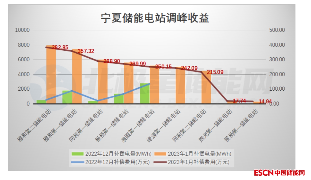 據(jù)北極星儲(chǔ)能網(wǎng)統(tǒng)計(jì),自2022年12月開始,寧夏投運(yùn)的儲(chǔ)能電站陸續(xù)開始參與西北地區(qū)電力輔助服務(wù)調(diào)峰市場,2022年12月-2023年1月兩個(gè)月內(nèi)9座儲(chǔ)能電站累計(jì)調(diào)峰收益超過2370萬元。
