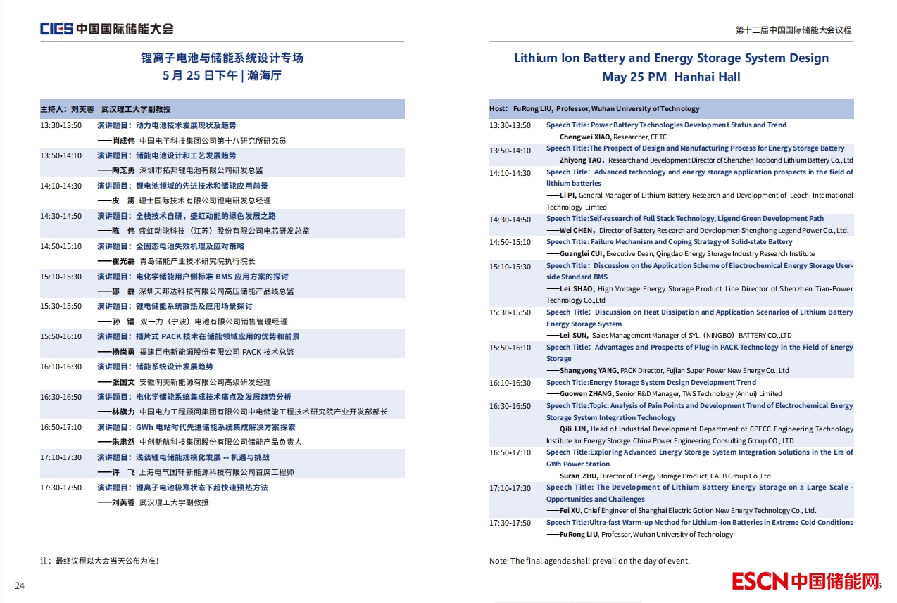 大會安排有開幕式暨院士/專家主題報告、“雙碳”目標(biāo)下儲能產(chǎn)業(yè)發(fā)展新路徑專場、新型電力系統(tǒng)與儲能系統(tǒng)整體解決方案專場、儲能安全與系統(tǒng)集成專場、獨立共享儲能電站專場、新型儲能系統(tǒng)集成解決方案專場、用戶側(cè)儲能與虛擬電廠專場、儲能安全與消防系統(tǒng)專場、長時儲能技術(shù)及應(yīng)用專場、儲能檢測、認(rèn)證與標(biāo)準(zhǔn)專場、鋰離子電池與儲能系統(tǒng)設(shè)計專場、智能微電網(wǎng)及分布式能源專場、儲能資本市場專場(上下)、儲能與電力市場專場、中國西北儲能市場專場、溫控系統(tǒng)及電氣設(shè)備專場等17個專場論壇。