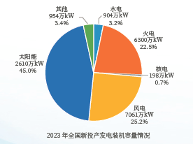 新投產裝機規(guī)模有望連續(xù)第二年創(chuàng)歷史新高。預計2023年全國新投產發(fā)電裝機容量2.8億千瓦,比上年增長40.3%,連續(xù)兩年創(chuàng)歷史新高。其中,水電新投產904萬千瓦,比上年減少62.1%;火電新投產6300萬千瓦,為2016年以來新高,比上年增長40.9%;核電新投產198萬千瓦,比上年減少13.1%;風電新投產7061萬千瓦,比上年增長87.6%,新投產裝機容量僅次于2020年;太陽能新投產1.3億千瓦,比上年增長44.3%,創(chuàng)歷史新高;新型儲能新投產954萬千瓦,比上年增長約1.5倍。
