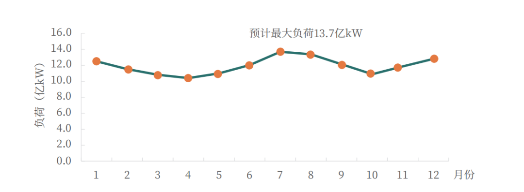 全國最大負荷增速接近電量增速,夏冬雙高峰特征明顯。預計2023年,全國最大負荷13.7億千瓦,比上年增長6.5%,出現(xiàn)在夏季。冬季全國最大負荷12.8億千瓦左右,出現(xiàn)在12月。