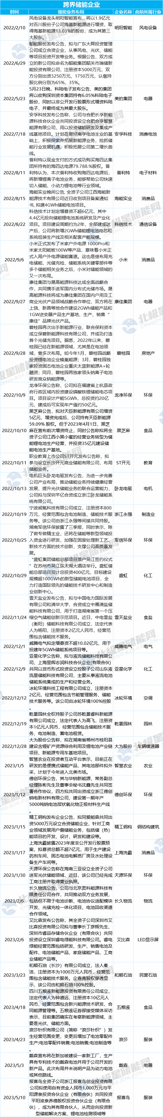近兩年儲能行業(yè)大熱,不少非電力行業(yè)企業(yè)紛紛投資、跨界儲能。據(jù)北極星儲能網(wǎng)不完全統(tǒng)計,2022年至今,有三十余家企業(yè)官宣跨界儲能領(lǐng)域,如環(huán)保巨頭龍凈環(huán)保、制鹽企業(yè)雪天鹽業(yè)、紡織業(yè)巨頭盛虹集團、母線巨頭威騰電氣、教育企業(yè)ST開元、食品巨頭南方黑芝麻、酒業(yè)龍頭五糧液等等。