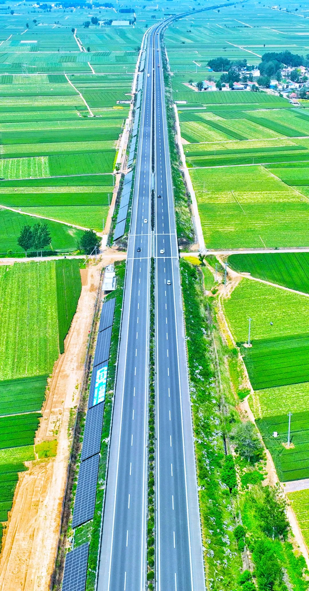 棗菏高速公路全線太陽能輻照資源豐富,可利用土地多。中國能建依托自身優(yōu)勢,建設(shè)了全國首個交能融合示范工程。