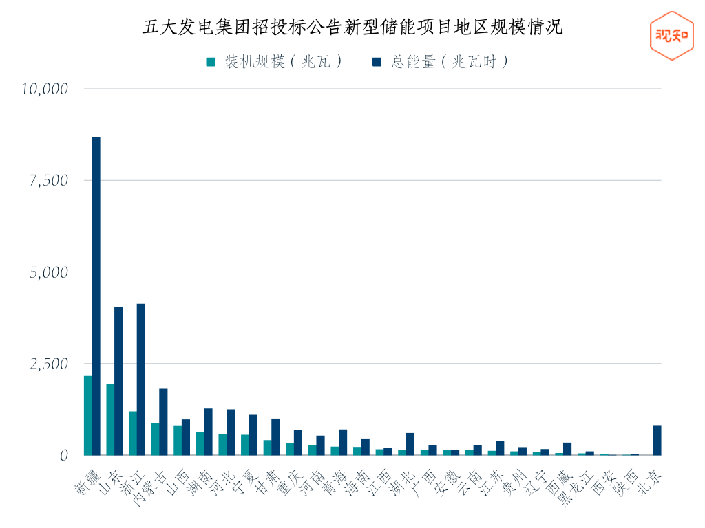 至于大唐,總規(guī)模只有532MW/1107MWh,顯著落后于其他集團。