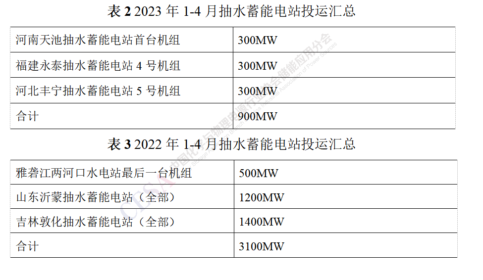 2023年1-4月共有3個(gè)抽水蓄能項(xiàng)目投運(yùn),合計(jì)900MW,分別是河南天池抽水蓄能電站首臺(tái)機(jī)組、福建永泰抽水蓄能電站4號(hào)機(jī)組以及河北豐寧抽水蓄能電站5號(hào)機(jī)組,其中福建永泰抽水蓄能電站4號(hào)機(jī)組的正式投產(chǎn)發(fā)電,標(biāo)志著福建省屬國(guó)有企業(yè)自主建設(shè)、自主運(yùn)營(yíng)的首個(gè)抽水蓄能電站全容量投產(chǎn)發(fā)電。而2022年同期,也一樣有3個(gè)抽水蓄能項(xiàng)目投運(yùn),合計(jì)為3100MW,與2023年不同的是,2022年三個(gè)抽水蓄能項(xiàng)目均已到項(xiàng)目最后階段,投運(yùn)的是項(xiàng)目最后的機(jī)組,實(shí)際上近兩年同期抽水蓄能項(xiàng)目裝機(jī)功率相對(duì)持平。