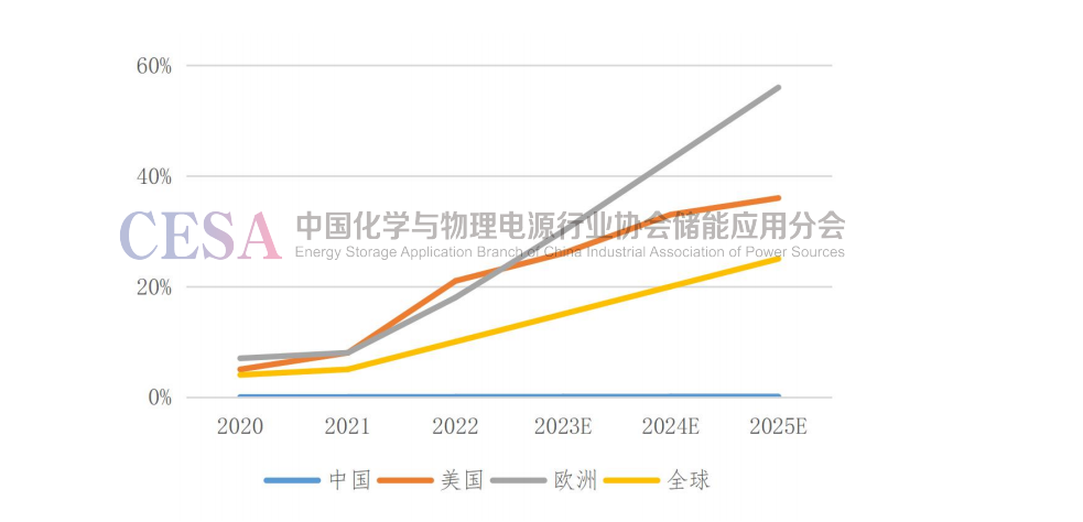 圖6 全球各區(qū)域戶用儲能滲透率預(yù)測