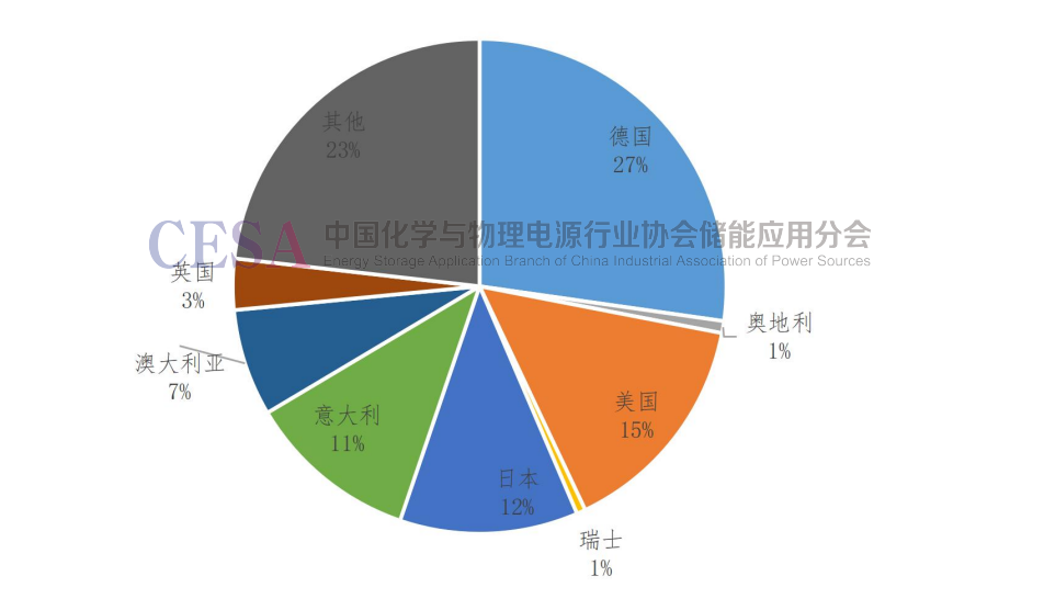3.2022年戶用儲能新增裝機(jī)中德國、美國、日本、意大利和澳大利亞位列前5,合計(jì)占比超過70%
