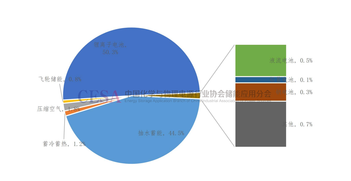6.2022年中國新增電化學(xué)儲能中鋰離子電池占比超96%,占絕對主導(dǎo)地位