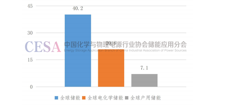 圖1 2022年全球儲能、電化學(xué)儲能和戶用儲能累計(jì)裝機(jī)功率
