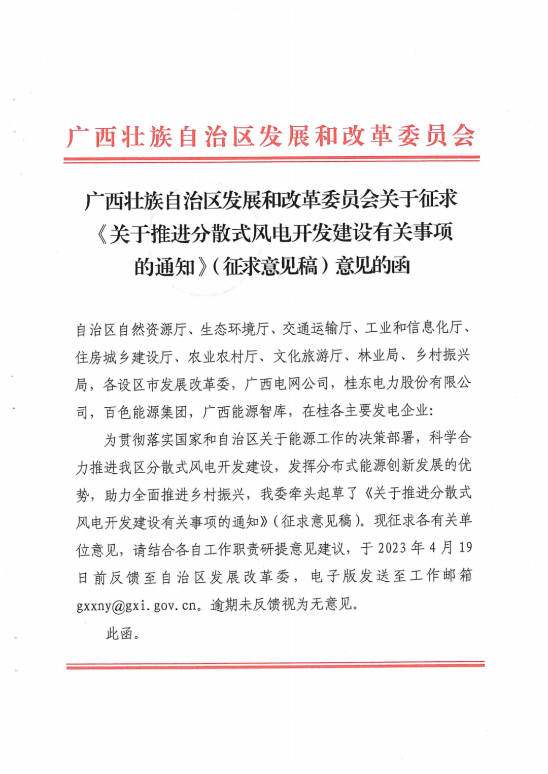 中國儲能網(wǎng)訊:近日,廣西壯族自治區(qū)發(fā)改委發(fā)布關(guān)于征求關(guān)于推進(jìn)分散式風(fēng)電開發(fā)建設(shè)有關(guān)事項(xiàng)的通知》(征求意見稿)意見的函。