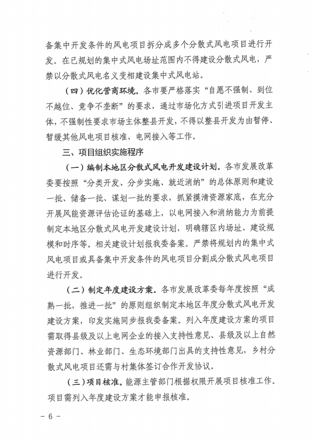 各市要嚴(yán)格落實(shí)“自愿不強(qiáng)制、到位不越位、競爭不壟斷”的要求,通過市場化方式引進(jìn)項(xiàng)目開發(fā)主體,不強(qiáng)制性要求市場主體整縣開發(fā),不得以整縣開發(fā)為由暫停、暫緩其他風(fēng)電項(xiàng)目核準(zhǔn)、電網(wǎng)接入等工作。
