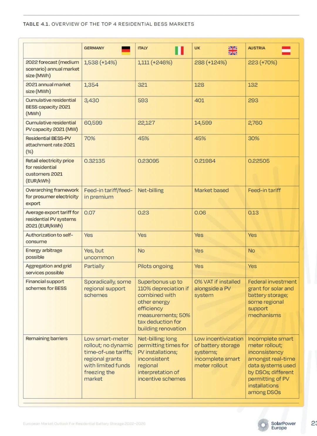 市場分布上看,2022-2026年,德國仍將是戶儲領域無可爭議的領導者,意大利緊隨其后,但還有一段距離。